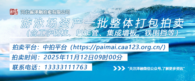 - [拍賣(mài)公告]游泳場(chǎng)資產(chǎn)一批(含工字鋼柱、PVC管、集成墻板、鐵圍擋等)整體打包拍賣(mài)20251112